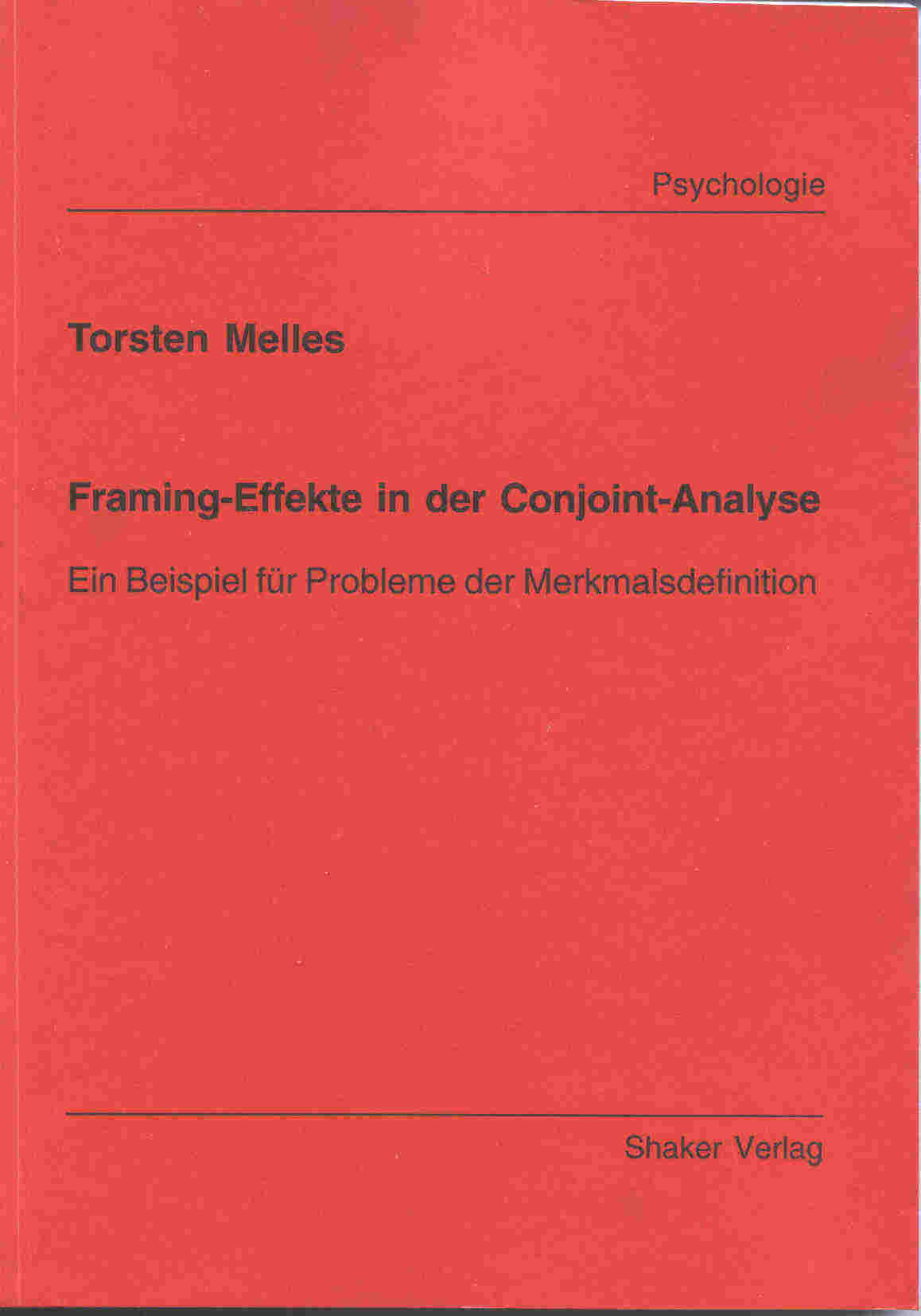 Dabei ist die Anwendung der Methode nicht immer unproblematisch. In zahlreichen Studien ließen sich Präferenzeffekte nachweisen, die sich zudem je nach Umsetzung der conjointanalytischen Methode in ihrem Ausmaß unterscheiden. Prominentestes Beispiel ist der Number-of-Levels-Effekt. Während der Number-of-Levels-Effekt bereits zu einer Vielzahl von Forschungsarbeiten inspiriert hat, ist über andere Effekte - wie den Framing-Effekt - bislang kaum etwas bekannt. Der Framing-Effekt beschreibt beispielhaft, wie sich die Definition von Objektmerkmalen auf die Präferenzen von Personen auswirken kann, und ist Gegenstand dieser Arbeit. Präferenzeffekte wie dieser können sehr unterschiedliche Ursachen haben und erschweren nachhaltig die Interpretation der Ergebnisse von Conjoint-Analysen.